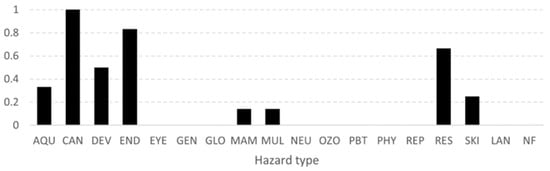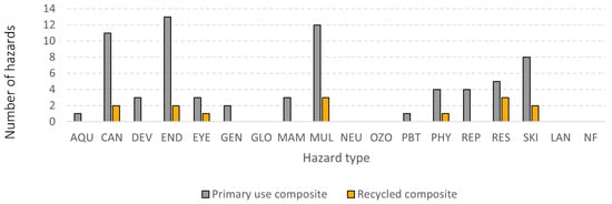 Number of hazards found for each hazard type for the resin-based composite material group.