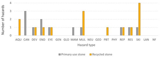 Number of hazards found for each hazard type for the stone material group.