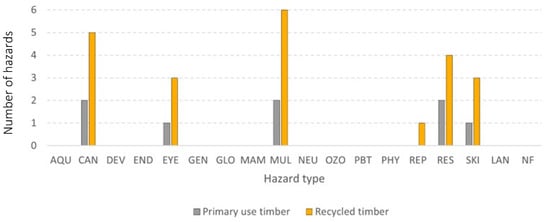Number of hazards found for each hazard type for the timber material group.