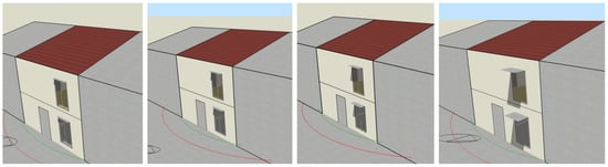 ![]() | Overhangs, windows (OW) | 0.1 m (a) | 0.15 m (b) | 0.25 m (c) | 0.5 m (d) | |