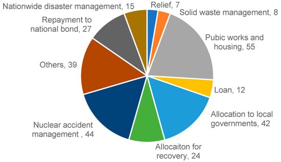 22]. Rehabilitating public facilities and houses accounts for the largest share, followed by management of the nuclear accident and allocation to local governments (