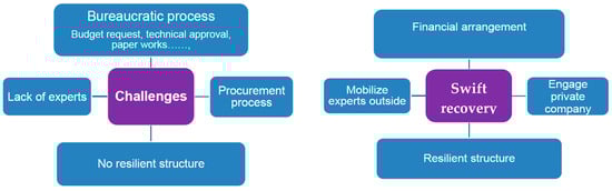 33]. This allowed them to skip ordinarily procurement procedures. The national government covers most rehabilitation costs, considering the limited financial capacity of local governments. Finance and line ministries jointly conducted appraisals for rehabilitation works and immediately approved budgets for rehabilitation. Experts outside disaster areas supported offices in disaster areas to promote rehabilitation works. Retrofitting works substantially decreased damage from disasters.