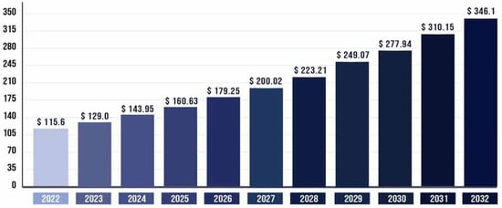 The estimated value of the worldwide medical tourism industry in 2022 was USD 115.6 billion. It is projected to reach around USD 346.1 billion by 2032, with a compound annual growth rate (CAGR) of 11.59% from 2023 to 2032, which is shown in Figure 3.