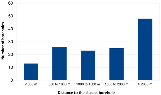Figure 11. Minimum distance between each borehole and the closest borehole.