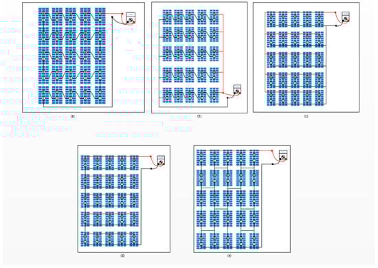 Solar photovoltaic array configurations: (a) series; (b) series–parallel; (c) TCT; (d) parallel; (e) BL.