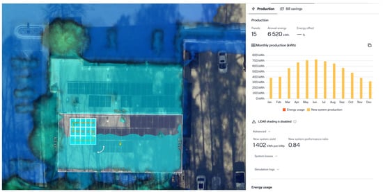 The use of micro-inverters is only facilitated by the bypass diodes, and it is more efficient in shady areas compared to MPPT trackers. But the proposed configuration is supported by MPPT, bypass diodes, and the interconnection scheme itself. Some of the results of the simulations using Aurora Solar, which is known for accurate production numbers aligning with real-world scenarios, clearly show that the system will perform best with MPPT and the Modified BL configuration.