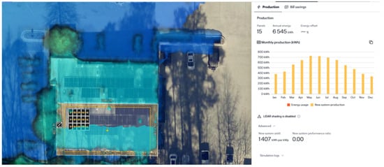 An experiment was also carried out using Aurora Solar simulations to validate the results for real-world applications. This study provides a comparison between an MPPT tracker, micro-inverters, and an MPPT tracker with panels connected using the Modified BL configuration. Figure 11, Figure 12 and Figure 13 depict the simulation setups, keeping the same number and model of the panels. A comparison of an MPPT controller, micro-inverter, and MPPT controller with the Modified BL configuration has been tabulated in Table 3. From the comparison, it can be observed that the MPPT controller with the Modified BL configuration has better production and efficiency in comparison to the other techniques.