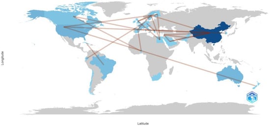The lines between countries illustrate the networks of research collaboration. Thicker lines signify stronger collaborative ties, meaning that those countries have frequently co-authored research papers or engaged in joint research projects. Thinner lines, on the other hand, suggest less frequent collaborations. This visual depiction not only highlights the geographic spread of research activity but also underscores the strength and extent of international research partnerships (Figure 4).