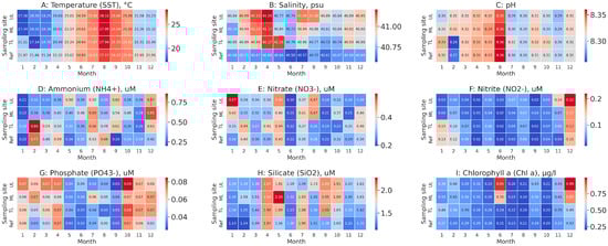 Phosphate (PO43−) concentrations showed that all values were at their lowest level, indicating healthy conditions throughout the year. Phosphate values exhibited relatively stable phosphate.