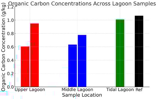 The sediment quality analysis of the Ayla Lagoons further attests to their environmental health and sustainability. The spectrum of organic carbon concentrations, ranging from 0.605 to 1.067 g/kg, signifies a moderate to significant presence of organic material within the sediment layers (Figure 4).