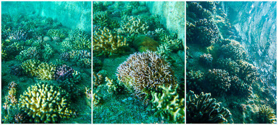 - Boström-Einarsson, L.; Babcock, R.C.; Bayraktarov, E.; Ceccarelli, D.; Cook, N.; Ferse, S.C.; Hancock, B.; Harrison, P.; Hein, M.; Shaver, E. Coral restoration—A systematic review of current methods, successes, failures and future directions. PLoS ONE 2020, 15, e0226631. [Google Scholar] [CrossRef]