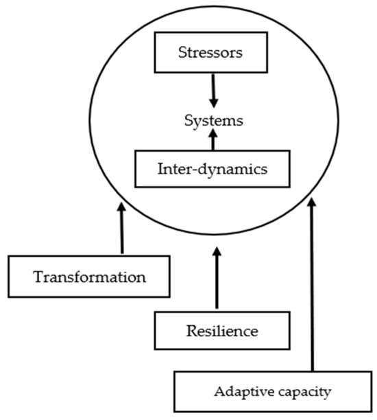 Resilience theory is a multidisciplinary framework put into play to better understand how systems react to stress, challenges, and disruptions. It explains adaptation and transformation function (Maponya and Mpandeli, 2008 [24]; Den Hartigh et al., 2024 [25]). In communities, resilience is highly expected and seen when problems arise and affect everyone within the community. Resilience science began half a century ago, when psychiatry and paediatrics were trying to find ideas for the beginning and treatment of problems (Savelli et al., 2022) [26]. From the beginning, resilience research establishers tended to look at the process that explains how individuals manage situations of hardships (Sonenshein et al., 2024) [27]. Their convincing ideas proliferated the field of resilience science, running away from deficit-focused orientations toward models centred on positive aims, promotive and protective factors, and adaptive capacities (Savelli et al., 2022) [26]. Figure 1 visually articulates the framework’s key components that illustrate the theory’s understanding.