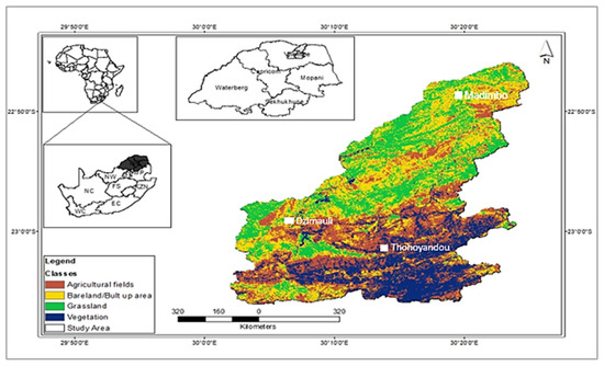 11. Lidzhegu, Z.; Kabanda, T. Declining land for subsistence and small-scale farming in South Africa: A case study of Thulamela local municipality. Land Use Policy 2022, 119, 106170. [Google Scholar] [CrossRef]