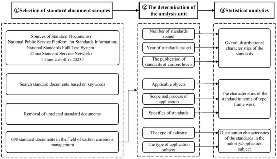 The remainder of this paper is structured as follows: Section 2 outlines the methodology, Section 3 provides an overview of the developmental trajectory of China’s carbon emission management standards, Section 4 examines the current status of China’s carbon emissions standards system, and Section 5 analyzes the deficiencies in the system and potential future developments. Finally, the paper concludes with key findings in Section 6.