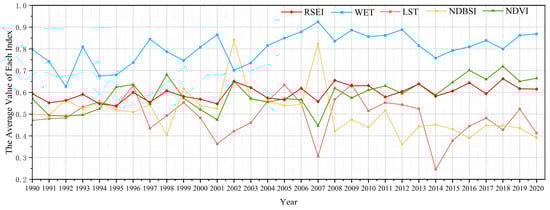 Table 7. Average RSEI of various LUC types from 1990 to 2020.