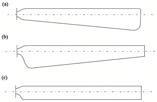 Figure 3. (a) Blunt blade design; (b) taper blade design; (c) rectangular blade design [50].