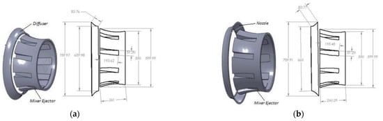 Figure 4. (a) Mixer ejector with diffuser; (b) mixer ejector with nozzle [50].