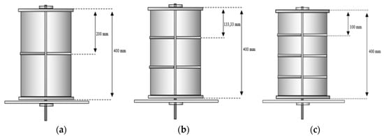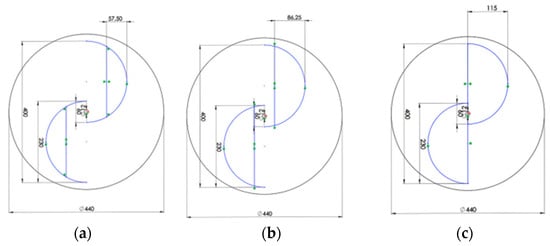 Figure 6. Savonius wind turbine with the diameter. (a) Variation in fin area with diameter 57.50 mm; (b) variation in fin area with diameter 86.25 mm; (c) variation in fin area with diameter 115 mm [51].