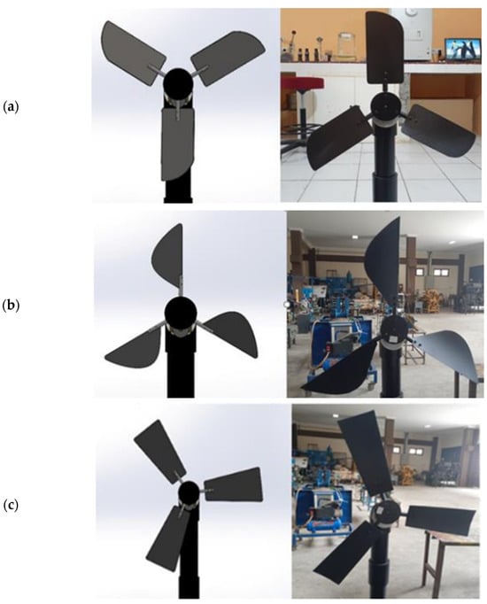 Figure 10. (a) Blade I HAWT; (b) blade II HAWT; (c) blade III HAWT [57].