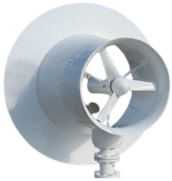 Figure 13. Prototype wind lens (wind turbine with a flanged diffuser shroud) [83].