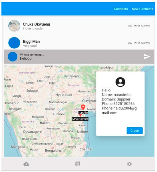 The integration of Geopy and Google Maps’ premium APIs enables the platform to offer advanced geolocation services. Geopy is a Python 3.11.4 library that simplifies the process of locating the coordinates of addresses, cities, countries, and landmarks. Google Maps’ premium APIs provide high-quality mapping, routing, and location data. These services allow users to find supply chain partners based on their geographical proximity. For example, a retailer can locate nearby manufacturers or suppliers, which can significantly reduce transportation costs and delivery times. Additionally, the real-time tracking of shipments becomes possible, enhancing the overall efficiency of the supply chain.