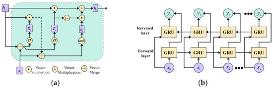 Neural network structure diagram (a) GRU; (b) BiGRU.