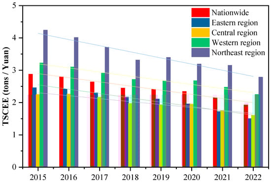 3.1.1. Temporal Evolution of TSCEI in China