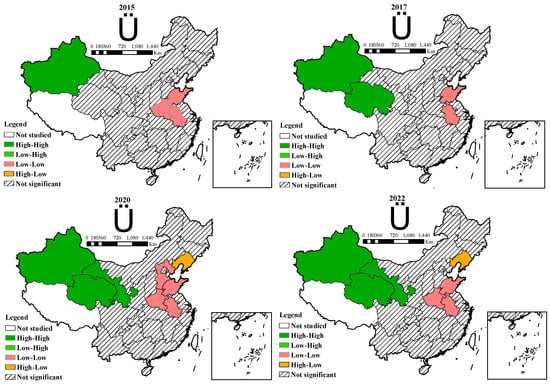 3.2.2. Spatial Autocorrelation Analysis of TSCEI in China