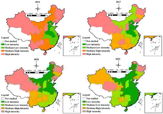 3.1.2. Spatial Distribution Trends of TSCEI in China