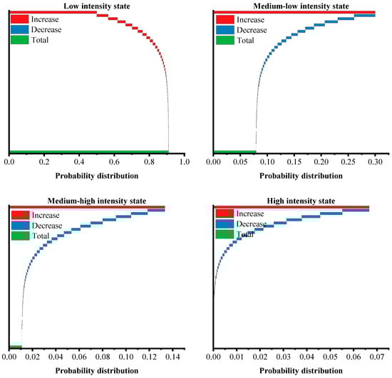 - The state transfers of TSCEI in China exhibit a notable degree of stability, with leapfrog improvements in provincial TSCEI being difficult to achieve in adjacent years. Geospatial patterns play a crucial role in the spatiotemporal evolution of TSCEI, with pronounced spatial spillover effects. In terms of long-term evolutionary trends, provincial TSCEI gradually shifts from high- to low-intensity states over time, with an equilibrium probability of 90.98% for transferring to a lower-intensity state under the premise of maintaining current policies. Additionally, the influences of different neighboring states on the long-term evolution of TSCEI demonstrate significant heterogeneity;