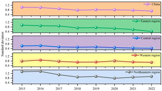 - Narrowing intra-regional TSCEI differences and implementing region-specific transportation carbon reduction policies—Although in the long-term, TSCEI in China shows a trend towards a lower-intensity state and exhibits characteristics of both convergence and convergence, the current significant spatial inequality of TSCEI across China has hindered the achievement of transportation carbon reduction targets, while the finding of the contribution of transvariation density not only supports the rationale behind the regional divisions but also highlights the distinct development paths for low-carbon transportation across different regions. Therefore, transportation carbon reduction policies must be tailored to local conditions. Specially, in the eastern region, efforts should focus on optimizing travel patterns, promoting green mobility alternatives, and prioritizing multimodal transportation and new energy vehicles. In the central region, the emphasis should be on electrifying railways and developing clean energy public transit systems to reduce reliance on traditional energy-intensive transportation modes. In the western region, characterized by vast geographical areas and higher TSCEI levels, policies should focus on developing green energy-driven transportation systems, and improving rural and cross-regional freight networks to enhance connectivity while reducing carbon intensity. In the northeastern region, with its heavy industrial base and reliance on traditional energy-intensive transportation, efforts should prioritize the electrification of key freight corridors and the modernization of public transit systems. Additionally, cross-regional collaboration should be strengthened to facilitate the diffusion of technologies and best practices from low-TSCEI provinces to high-TSCEI provinces;