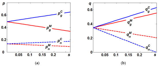 Recall that in both our models, the manufacturer invests in green R&D to produce green products while the competitor focuses on producing non-green products. Since green technology innovation is recognized as an effective approach to meeting near-zero- or zero-emission targets [4,5,6], consistent with [37,39], we can use the quantities of non-green products to denote the impact on carbon emissions and pollution emissions. Based on , we can conclude that the dynamic effects of subsidy policies under Model M are as follows: as the government subsidy levels increase, the impact on carbon emissions and pollution emissions decreases. It should be noted that this result is supported by Song et al. [40], who compared the effects of the industrial subsidy and the purchasing subsidy on the EV industry in China from 2015 to 2025. They argued that for an emerging industry, such as EVs, the industrial subsidy can help the industry to develop healthily.