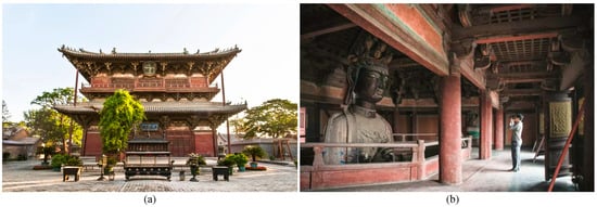 The temple (Figure 3) is believed to have originated during the Tang Dynasty and was reconstructed in the second year of Tonghe during the Liao Dynasty (984). Among the surviving structures from the Liao period are the Shanmen (Mountain Gate) and the Guanyin Pavilio, making Dule Temple one of only three extant Liao Dynasty temples in China.