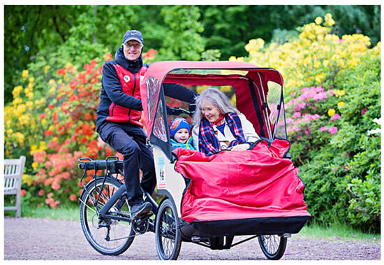 - Building Better Lives—Cycling without Age—Cycling without Age. Cycling Without Age. 2024. Available online: https://cyclingwithoutage.org/ (accessed on 21 November 2024).