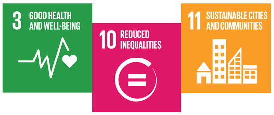 This initiative aims to target three Sustainable Development Goals (SDGs), as presented in Figure 3. By promoting mental and physical well-being among the elderly, this initiative aims to achieve Goal 3 (Good Health and Well-Being), Goal 10 (Reduced Inequalities), and Goal 11 (Sustainable Cities and Communities) by promoting sustainable, eco-friendly mobility solutions that strengthen local community ties and ensure inclusive access to outdoor activities and social engagement. Through its grassroots foundation and robust volunteer network, Cycling without Age keeps innovating and growing, demonstrating that improving social cohesion and well-being can coexist alongside sustainable transportation solutions [103,104,105].