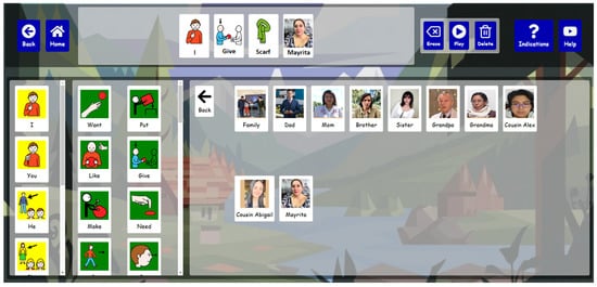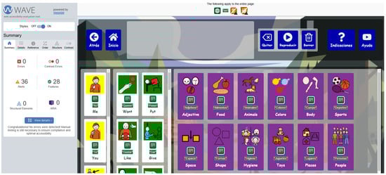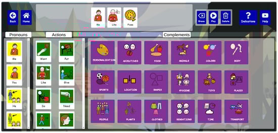 Figure 7. Its design has been meticulously crafted to ensure a seamless and effective communication experience, fostering active participation and strengthening the sense of community within the platform. A communication board, typically organized in a grid format, allows users to select icons or pictograms to express ideas in real-time, enhancing communication and user experience. Customization is central to the platform, enabling adaptation of the board’s content to suit the unique cultural, social, and educational needs of diverse user backgrounds, particularly benefiting children from varied cultural contexts.