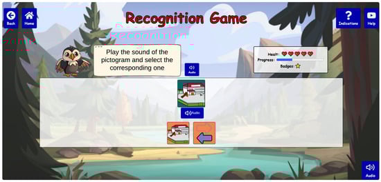 Figure 10, offering adjustable difficulty levels and the ability to personalize the experience according to the user’s preferences and abilities. Through interactive challenges, users familiarize themselves with the pictograms, reinforcing their knowledge in a fun, non-threatening environment. This approach not only supports learning but also encourages active participation and engagement, promoting better retention of visual symbols for effective communication.