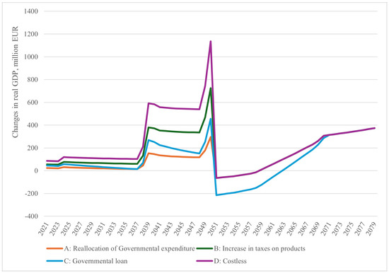Modelled changes in real GDP from 2021 to 2079 per EUR million (calculated by authors).