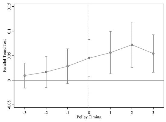 Regression is carried out with one period of lag on the dependent variable, and it is hypothesized that it takes some time for the implementation of the SCPP to promote the role of green technological innovation to appear because enterprises must devote a significant amount of time to research and innovation. Column 5 of Table 3 displays the regression results. The attributable coefficient of DID is significantly positive at the 1% level, indicating that the promotion effect of the SCPP on green technological innovation is significant even when the dependent variable is regressed with one period of lag.