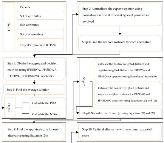 This research is organized as follows. Section 1 illustrates the significance of merging factors of uncertainty and incomplete information into decision-making strategies. Section 2 contains a detailed examination of the fundamental concepts that form the basis for the remainder of the study. Section 3 describes the interactional operational laws for IFHSS regulating IFHSS and presents the IFHSIWA and IFHSIOWA operators, along with their essential characteristics. Section 4 describes the IFHSIWG and IFHSIOWG operators, clearly explaining their distinctive features. Section 5 proposes a novel EDAS model that employs the operators mentioned above to deal with the obstacles of MAGDM. Section 6 performs an empirical study to evaluate the feasibility of the proposed approach, intending to identify the optimum thermochemical treatment method for managing MSW. The proposed technique is assessed using a thorough comparison study with previous methodologies in Section 7.