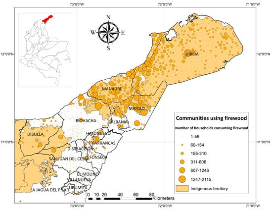 Communities using firewood (Source: own elaboration with ArcGIS software with data provided by [37]).