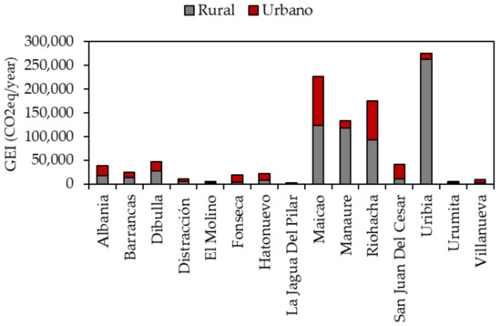 The northern municipalities (i.e., Uribia, Manaure, and Maicao), with the most indigenous population, account for 60% of the emissions. Overall, GHG emissions are higher than estimated here because deforestation to obtain firewood drives additional emissions from Agriculture, Forestry, and Other Land Use (AFOLU).