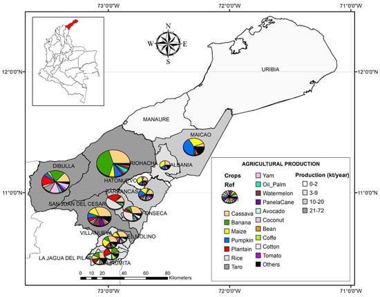 Agricultural production in La Guajira (Source: own elaboration with data from [46,47] and local producer associations).
