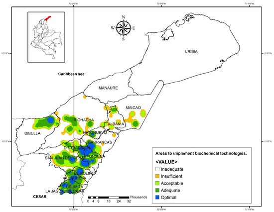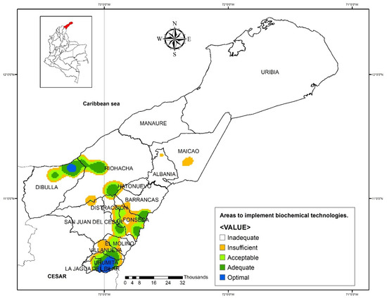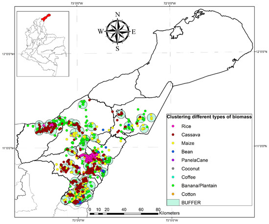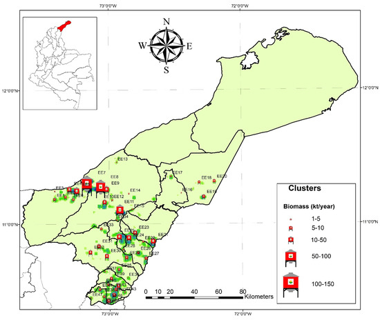 On the other hand, oil palm wastes are not available for energy valorization. No agro-industries are processing the oil palm fruit in La Guajira, which means that the fruit is transported to companies located in neighboring departments, leaving the residues available elsewhere, which is why they will not be considered in this assessment.