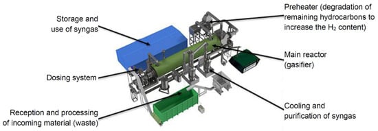 Schematic of the experimental gasification plant from which the biochar used in this study was obtained [33].