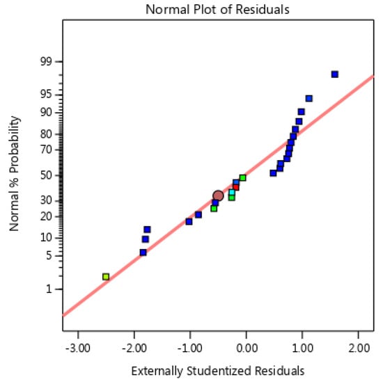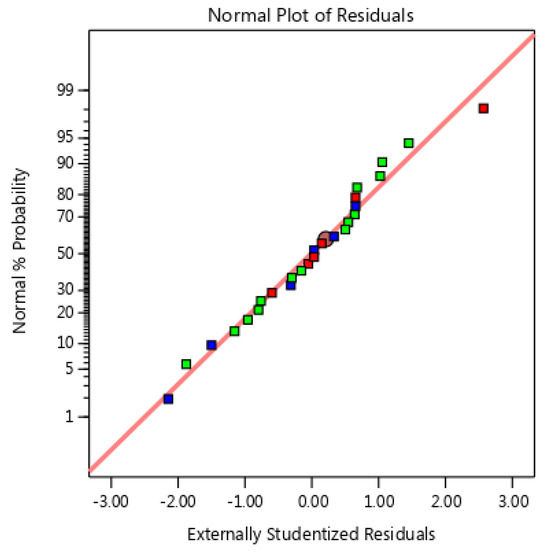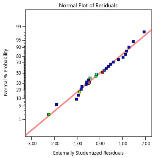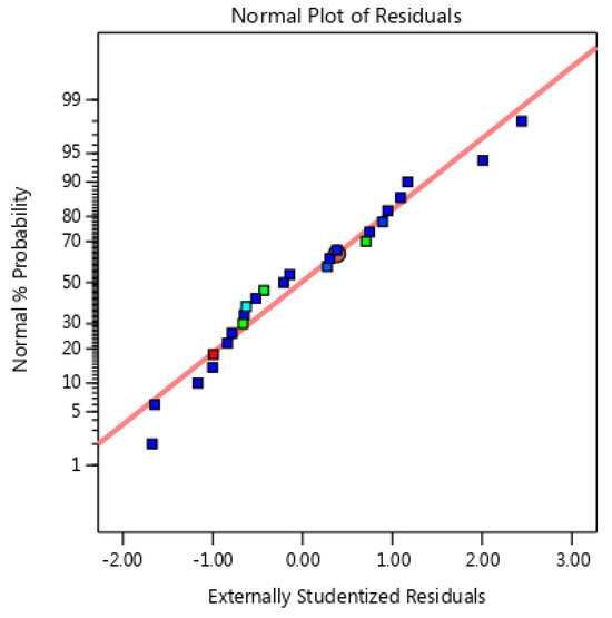 The normal plot of the residuals is shown in Figure 10. The residuals are normally distributed, and the model is valid.