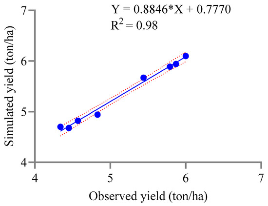The model analyzes the balance of accuracy, simplicity, and resilience, and while it applies to a wide range of agricultural systems around the world, it does have some limits [41]. The first constraint stems from the model’s intention to forecast crop yield at a single-field scale, specifically through point simulation. The second assumption is that the field is uniform, with no geographic changes in crop development, transpiration, soil properties, or management. The last limitation was that it only looked at the water moving up and down (rainfall, irrigation, and capillary rise) and leaving (evaporation, transpiration, and deep percolation).