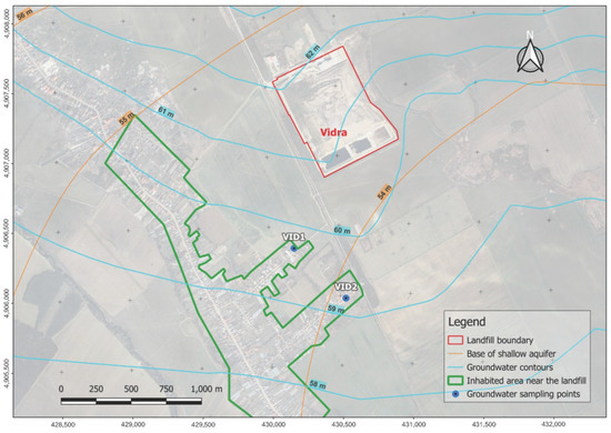 Groundwater samples, coded VID1 and VID2, collected near the Vidra landfill.