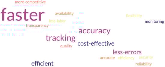 Free text responses were invited for participants to elaborate on their responses; the results showed several positive comments related to the use of RFID technology. Some of the positive comments include better monitoring, faster handling, fewer errors, more flexibility, cost-effectiveness, more accurate tracking, higher efficiency, better security, more reliability, more transparency, and better-quality operations and processes. Some of these positive impacts have been mentioned more than once, and Figure 3 shows their significance.