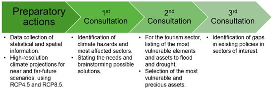 32]. The study implements a series of coherent citizen-based activities (a) conducting participatory climate risk assessment following a qualitative approach, (b) implementing place-based vulnerability assessment and (c) critical appraisal of regional and localized adaptation options. The municipality of Sitia in eastern Crete is a climate hotspot that is highly vulnerable to extreme events due to climate change and where local policies still need to be developed [